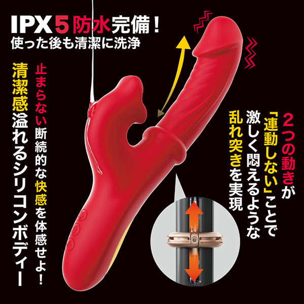 【新感覚の動き!乱れ撃ちを体感せよ!】2つの動きが「連動しない」ことで激しく悶えるような乱れ突きを実現!止まらない断続的な快感を体感せよ!