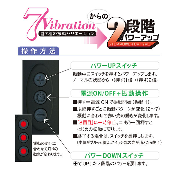 使いやすくハンディなボディに7パターン×2段階パワーの機能を搭載。
