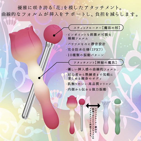 『ミステリアス・クロップス』は着脱可能なアタッチメントとシンプルなスティックローターがセットになったお手軽バイブ。