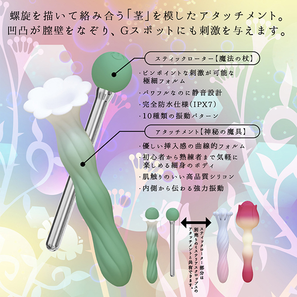 『ミステリアス・クロップス』は着脱可能なアタッチメントとシンプルなスティックローターがセットになったお手軽バイブ。