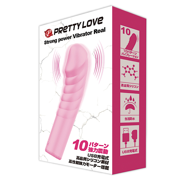 芯を震わすほどの圧倒的強力震動は前代未聞の驚愕と快感を与える!リアルな先端形状が中を深くまで刺激する!ストロングパワーバイブレーターリアル。高性能モーターによる10パターンの超強力震動が体の芯まで震わせる。高品質シリコンのサラサラとした肌触りの良いボディは生活防水で丸洗いも可能!