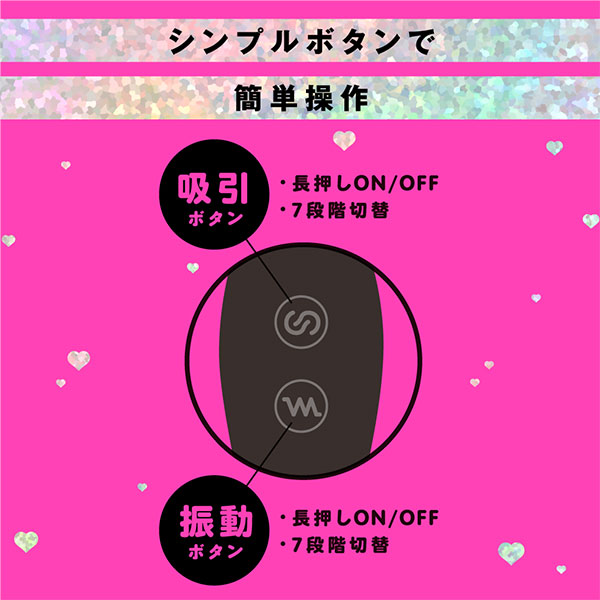 7パターン吸引×7パターン振動の全49バリエーション!優しくチュパチュパ吸われる吸引部分は、リアルなクンニのようにあなたを心地よく愛撫します。激しくブルブルと震えるバイブ部分は好きな挿入角度でピタッと固定でき、気持ちいい部分を集中的に刺激できます。