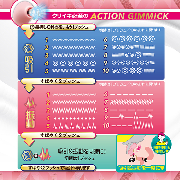 すばやく2回プッシュで、吸引 → 振動 → 吸引&振動