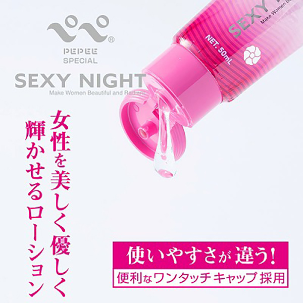 ぺぺスペシャル・セクシーナイトは、プラセンタ、ローヤルゼリー、イソフラボンといったエキスが配合されており、女性好みに作られたローションです。