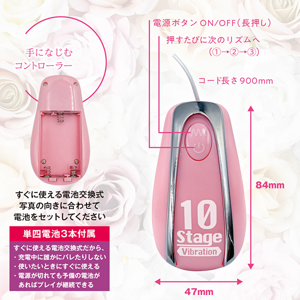 ■選べる10種類の強力リズム振動 手になじむ専用コントローラーで、10種類の多彩な振動パターンを切り替え可能。