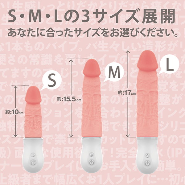 生感しっとりだからズッポリ密着!生感しっとりだから痛くなりにくい!生感しっとりだから可能な長時間プレイ!生感しっとりだから本気で悦ばれる!シリコン素材を使用した生々しい造形がリアルな1本ものバイブ。バイブのデメリットだった硬さの常識を覆した超しっとり素材を使用してますので、じっくりと確かな感覚をカラダで体感できます。本体の角度調整が可能なので自分の好みに合わせたスイング&バイブレーションを堪能できます。