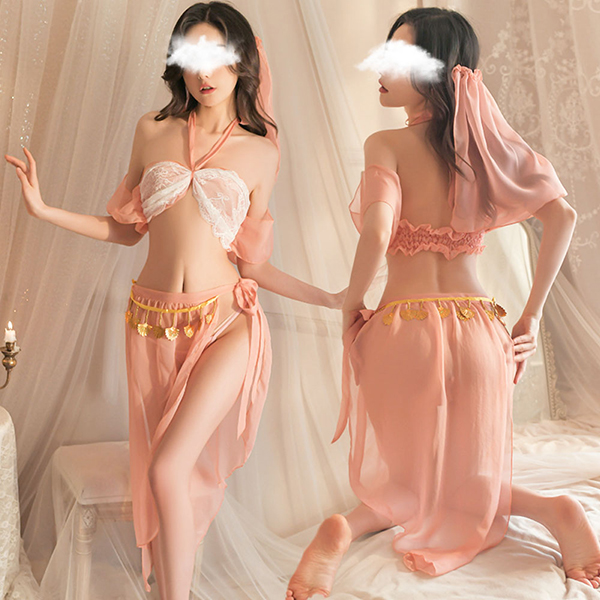 軽やかに揺れる布地が肌を美しく引き立て、幻想的な雰囲気を演出。