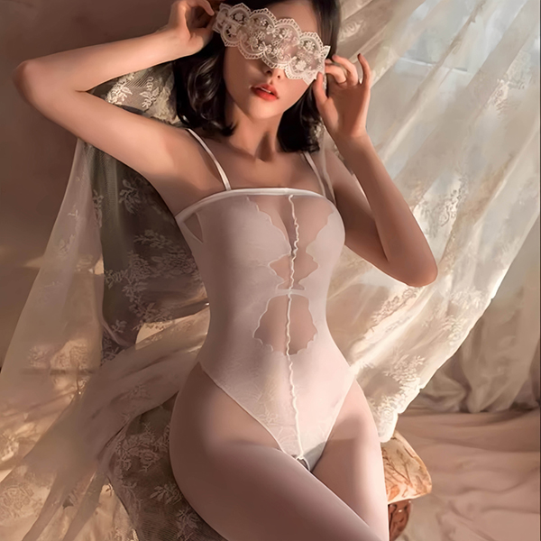 ☆ミステリアスな魅力を醸し出す目隠しレース付き!ボディラインをすっきり整えつつ、清楚さをこの上なく醸し出す純白ボディストッキング!