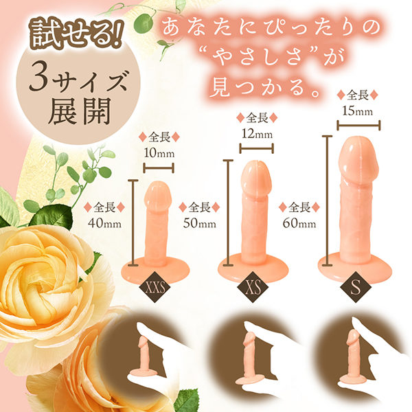 S・XS・XXSの3サイズ展開で、挿入が怖い方や初心者の方にもぴったり。