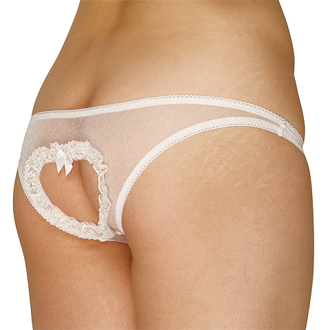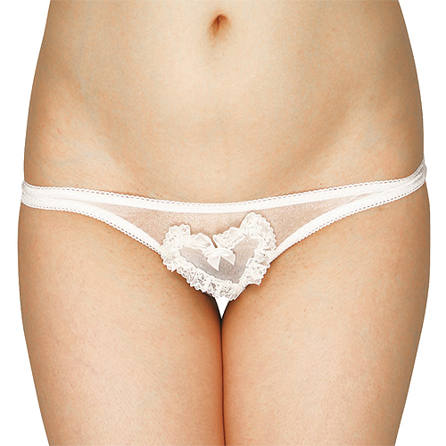 全体が超セクシーなシースルーで、フロントにハート型のローターポケットが付いた、Oバックタイプの女性用ショーツ。