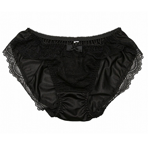 フロントにレースフリルをあしらったラブリーなデザインのフルバックショーツです。少し光沢のある生地なので高級感を感じさせるショーツです。