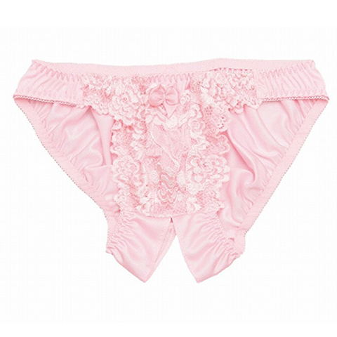 フロントにちょこんとついた小さなリボンと、美しいフラワーレースが印象的な可愛らしいピンクカラーのデザインショーツです。