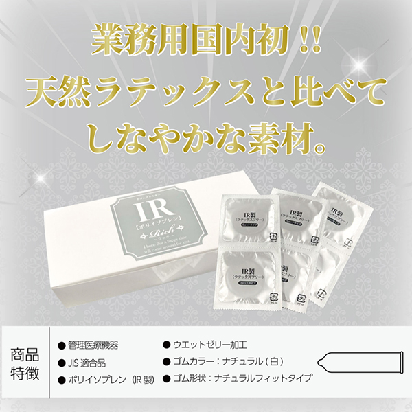 リッチ業務用に新たに非ゴムアレルギー対応ポリイソプレン製のコンドームが登場。