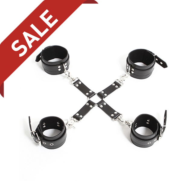 優しい着け心地の手枷足枷クロス拘束ベルト。肌触りの良い合皮。