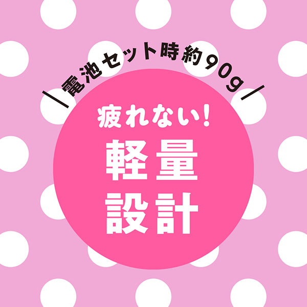 電池を入れた状態でも90gの軽量設計。強/弱をスライドスイッチで変化できる簡単操作仕様。