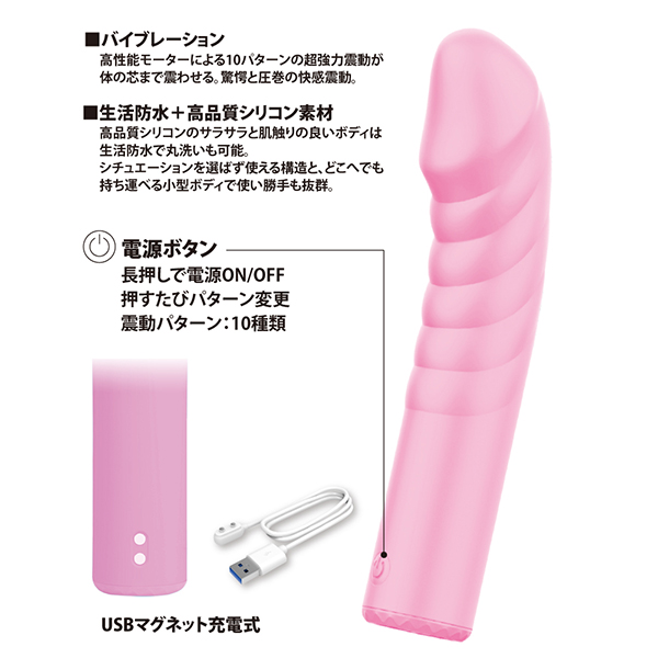 芯を震わすほどの圧倒的強力震動は前代未聞の驚愕と快感を与える!リアルな先端形状が中を深くまで刺激する!ストロングパワーバイブレーターリアル。高性能モーターによる10パターンの超強力震動が体の芯まで震わせる。高品質シリコンのサラサラとした肌触りの良いボディは生活防水で丸洗いも可能!