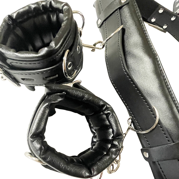 強制的にM字開脚させるM字開脚拘束ベルトと手枷のセット