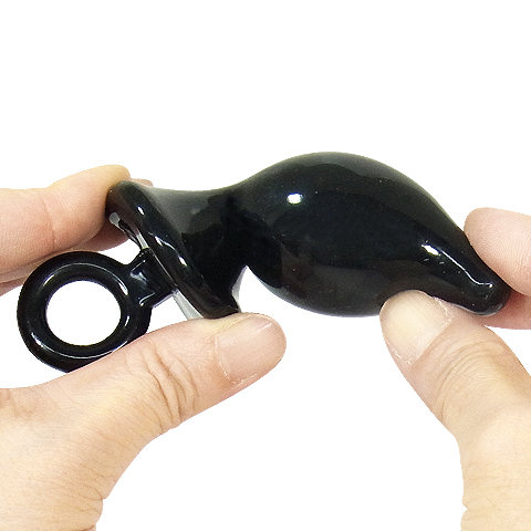 妖しく黒光りするボディが悦楽の世界へと誘うアナルグッズ「虜X 黒肛門栓 M」。