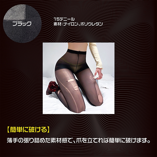 15デニールの破りやすいストッキング、プレイ専用の為、気兼ねなく願望を満たしてください。