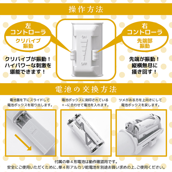 2点責めも自在の無段階コントローラで、バイブレーションをシームレスに変更。