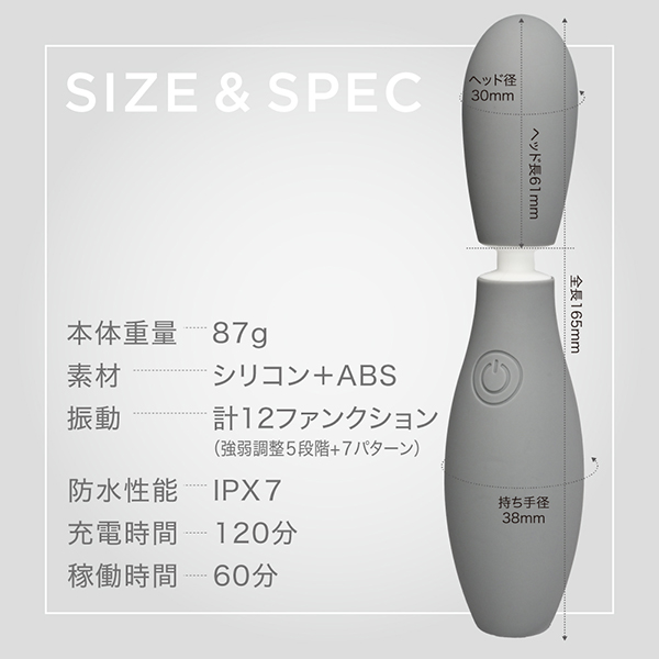 ■本体サイズ:全長165×ヘッド長61×ヘッド径30××持ち手径38mm