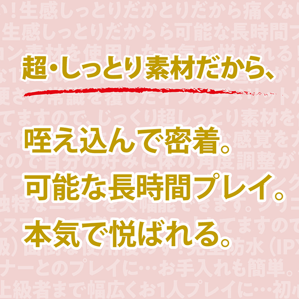 生感しっとりだからズッポリ密着!生感しっとりだから痛くなりにくい!生感しっとりだから可能な長時間プレイ!生感しっとりだから本気で悦ばれる!シリコン素材を使用した生々しい造形がリアルな1本ものバイブ。バイブのデメリットだった硬さの常識を覆した超しっとり素材を使用してますので、じっくりと確かな感覚をカラダで体感できます。本体の角度調整が可能なので自分の好みに合わせたスイング&バイブレーションを堪能できます。