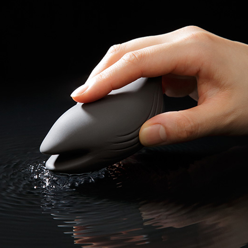 漆黒の夜を思わせるようなしっとりとした墨黒のクジラ型のローターは、ニコっと口をあけたようなデザインなので、色んなところを挟みならが刺激するのに最適。