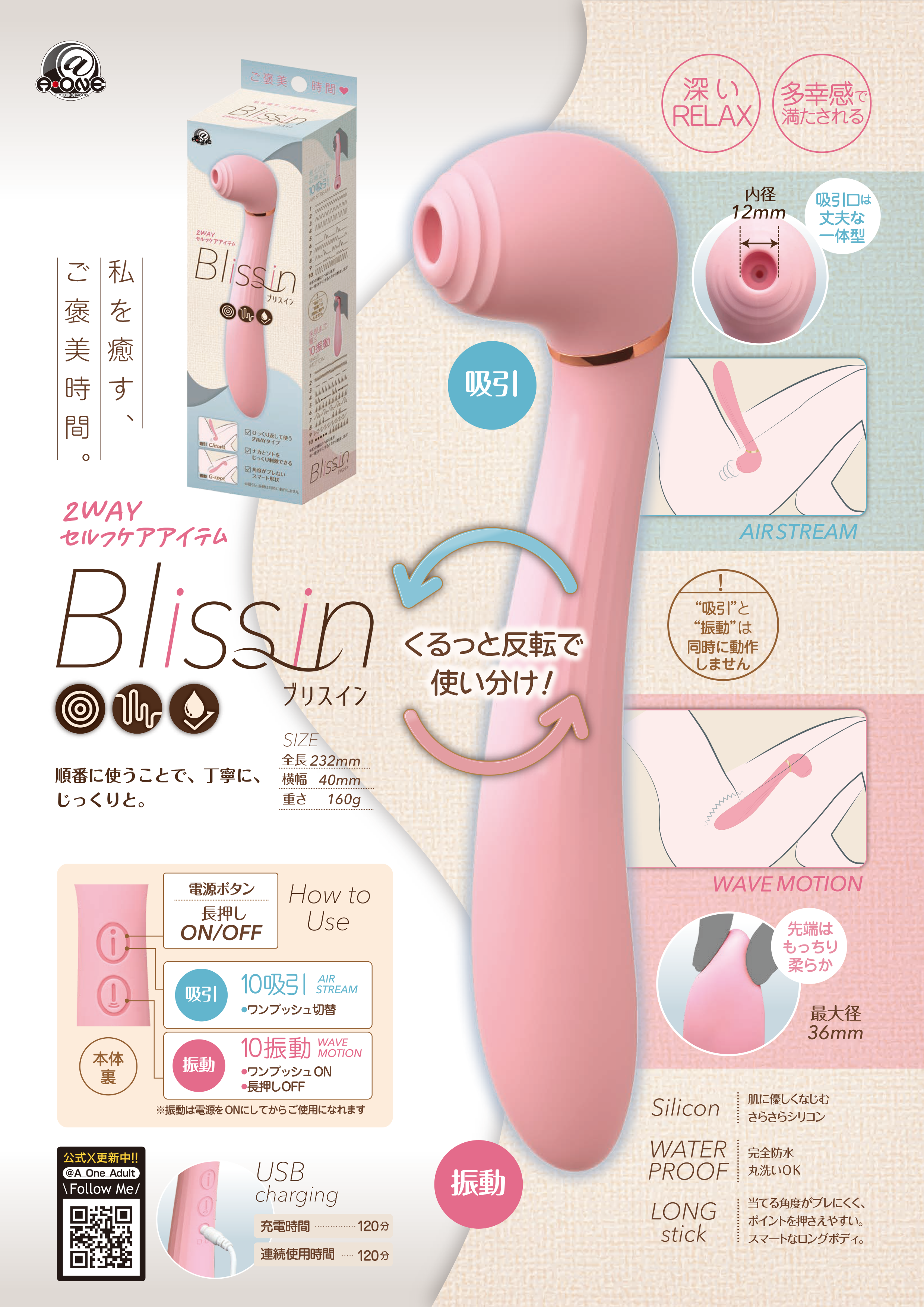 くるっと反転させて使い分けできる、2WAYセルフケアアイテム。