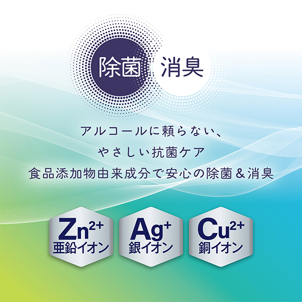 アルコールに頼らない、やさしい抗菌ケア。食品添加物由来成分で安心の除菌&消臭。