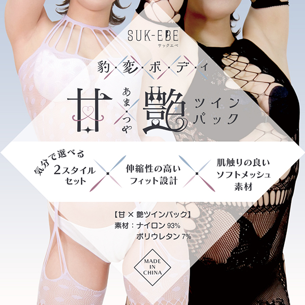「豹変ボディ甘×艶ツインパック」は、ひとつの身体で可愛い"と"色気"を切り替えて楽しめる、2スタイルセットのボディストッキングです。