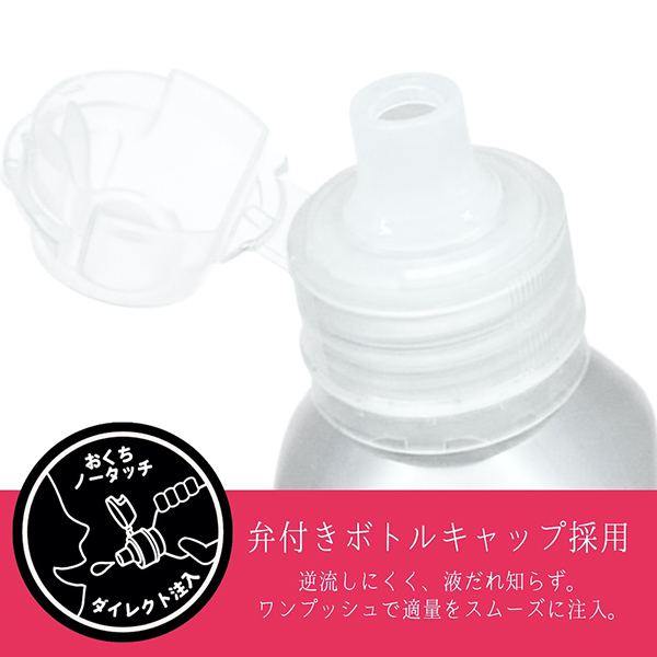 弁付きキャップで、ワンプッシュで適量をスムーズに吐出、お口にダイレクトイン!