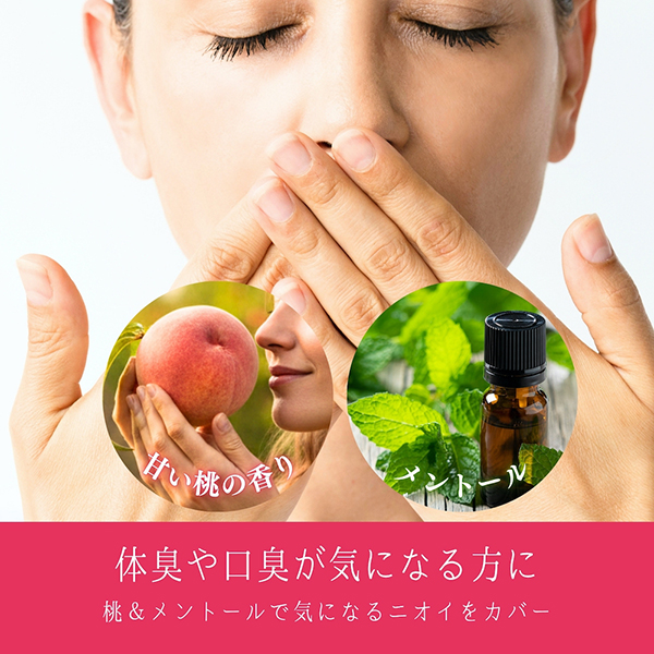 ほんのり甘い桃とメントールの爽やかさを添え、フルーティで心地よい香りとなめらかなとろみが口の中に優しく広がります。
